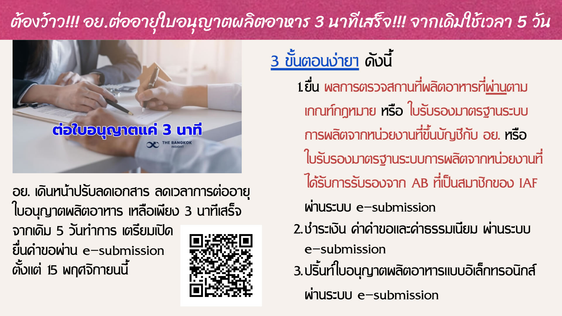 ต่ออายุใบอนุญาตผลิตอาหาร เร็ว สายฟ้าฟาด อนุญาตใน 3 นาที |